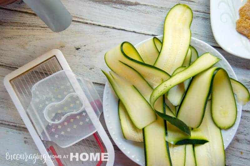 First of all, I recommend you first prepare the zucchini by peeling it and slicing it according to the directions in our zoodle recipe, start your pot heating with that, and then start cooking tilapia in the air fryer, and get that going. While the tilapia is cooking will be plenty of time to finish up the Tomato Garlic Noodles using the second recipe in this post. And still have the whole dish hot and ready to serve. That’s not how we always do it, but that’s what we think works best, especially if it takes your stove a while to boil water.
