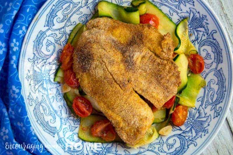 Air Fryer Tilapia (with Tomato Garlic Zoodles)