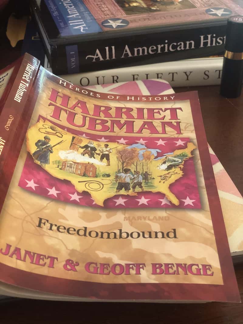 “Wow, she’s savage.” exclaimed one of my boys. We were partway into the first chapter of Harriet Tubman by Janet and Geoff Benge and my boys were already enthralled. Turns out Harriet Tubman is one of the coolest people they’ve read about in history, since she carried a pistol in her pocket to motivate panicking runaways. Harriet Tubman is part of the Heroes of History series, and takes place in Maryland. That’s perfect because we are reading books through the 50 states this year, and Maryland is close enough we can do some field trips related to Harriet Tubman! Since this is really one of the first read-aloud books I’ve done with my youngest boys, I had been very concerned about how well they would listen, but not anymore. These books are written so well that even my youngest is happy to sit and listen intently to the story.